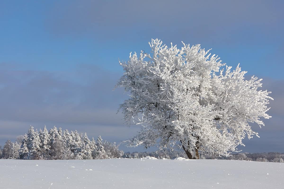 Lumi õunapuul. Otepää kõrgustikul Hinnomäel, 16.02.2025