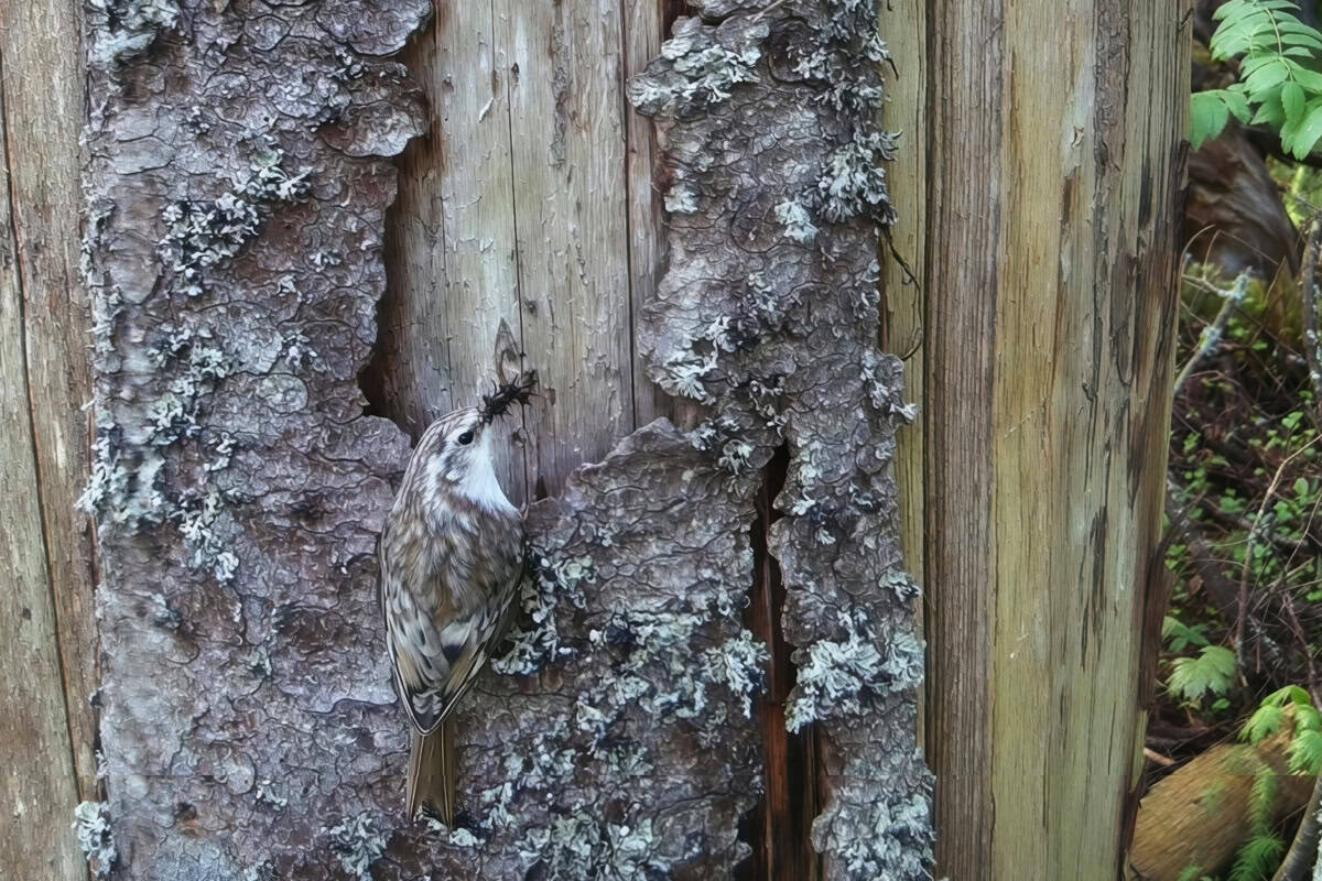 Porr viib poegadele putukaid. Pesa on peidus koorepraos. Hinnomäe Üraskimetsas, 22.05.2025