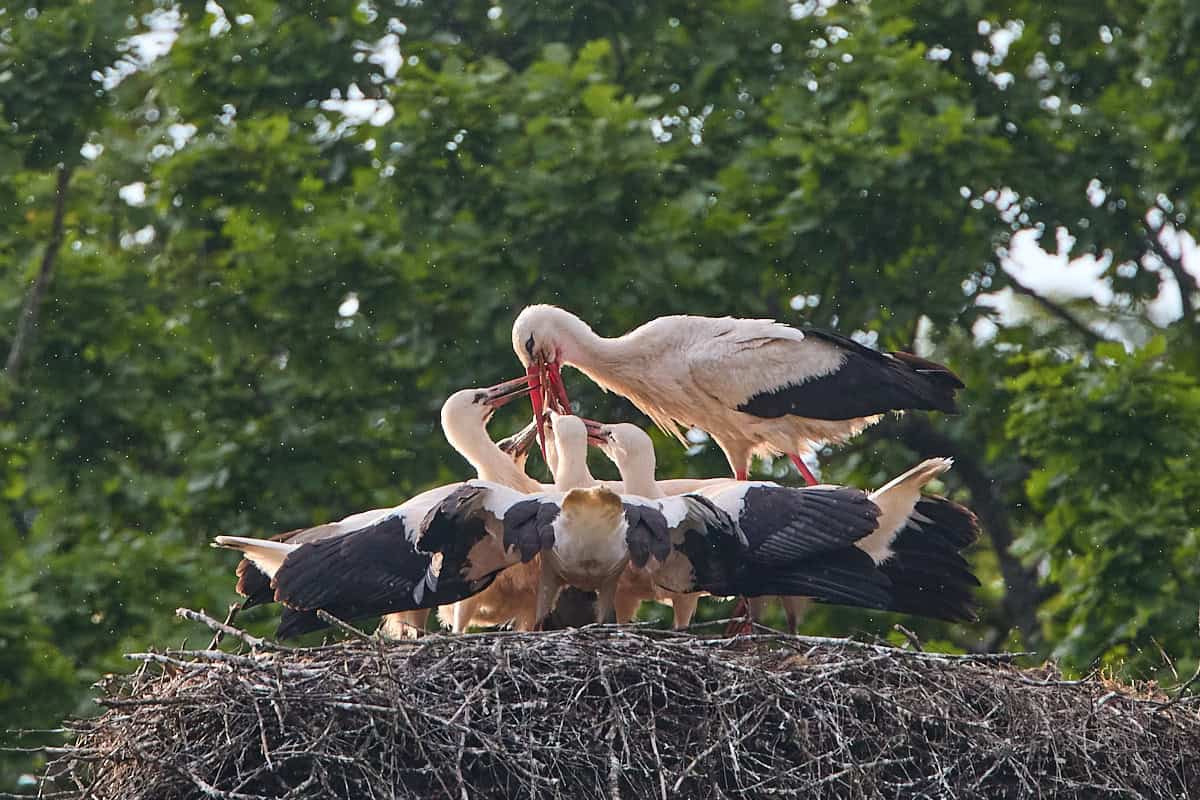Valge-toonekurg toidab poegi. Otepääl, 20.07.2025